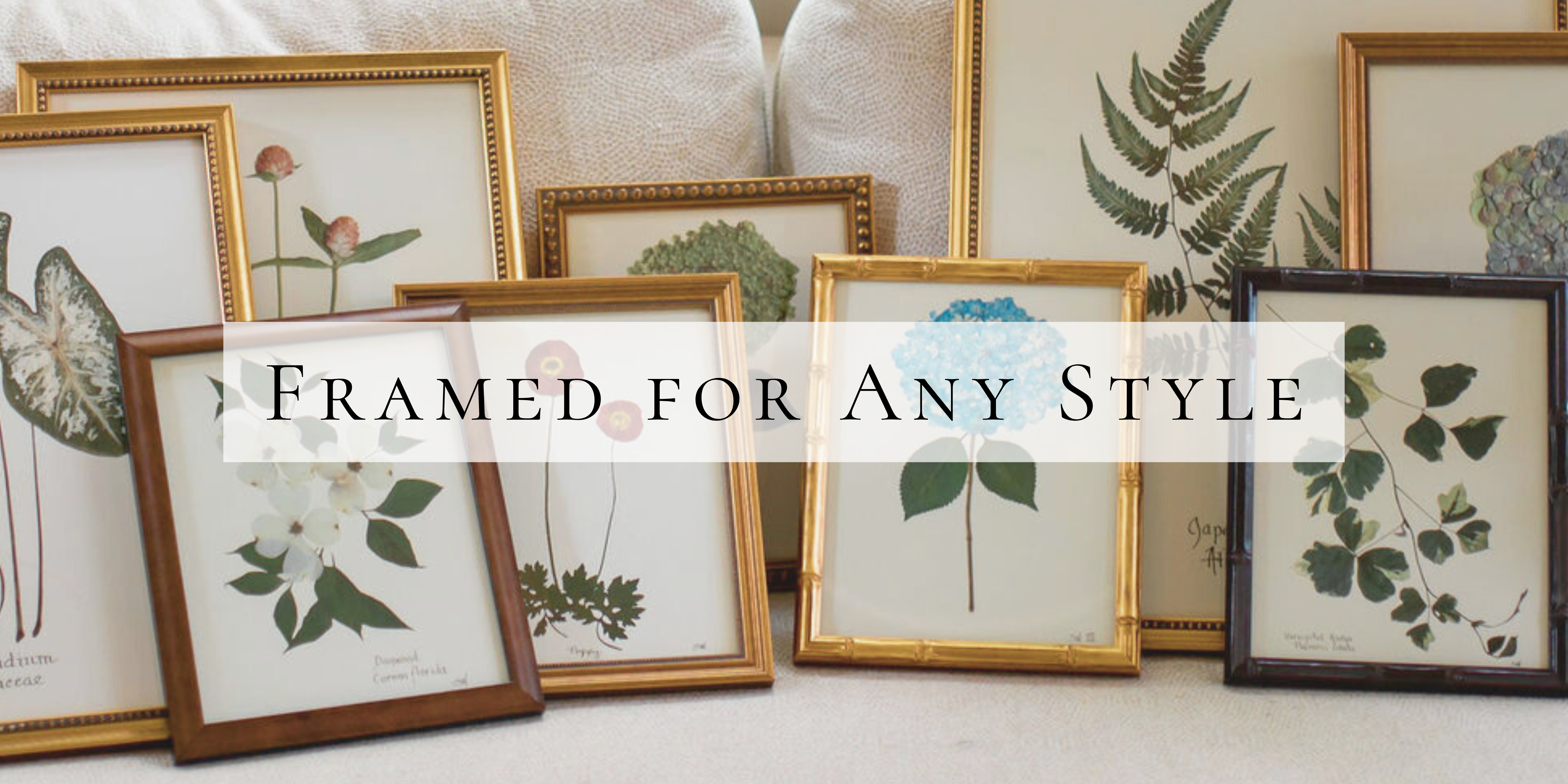 Our original giclée prints can be framed in all sizes to compliment the prints you choose. Framed works come fully assembed and ready to hang. You can see our 9 different framing options below, please note that all of our frames are ¾ inches wide.
